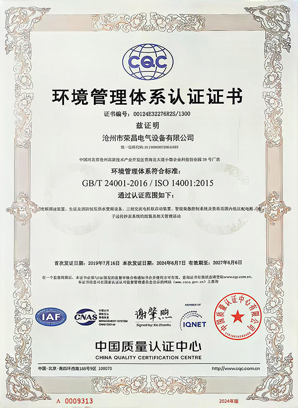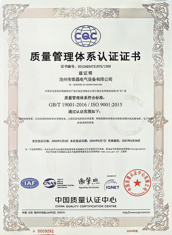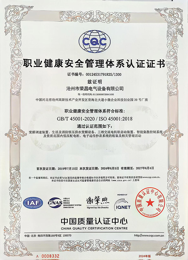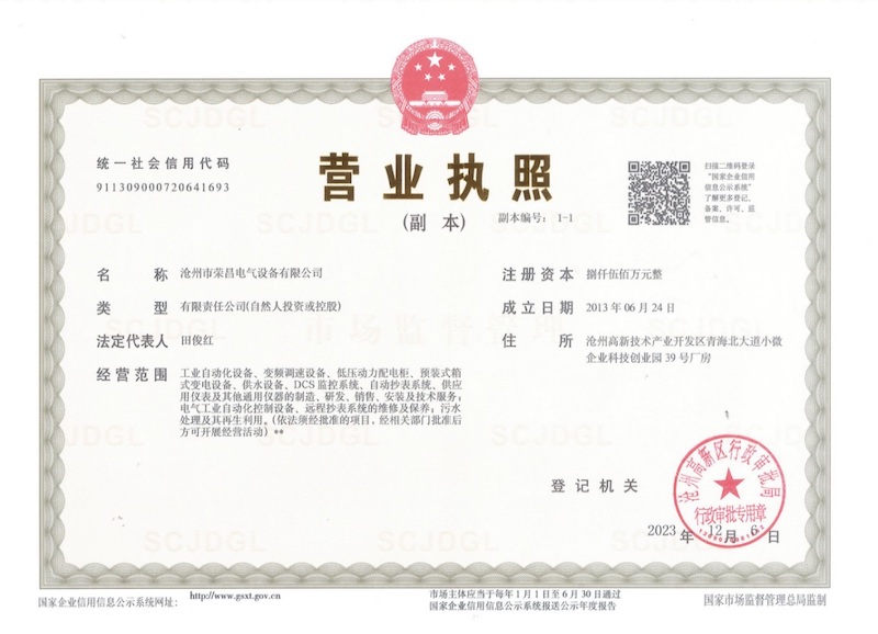 沧州市荣昌电气设备有限公司主要研发生产工业自动化设备、箱式变电站、生活、消防变频供水系统及无负压供水系统等。